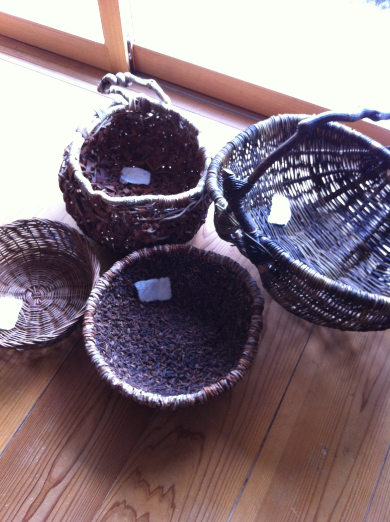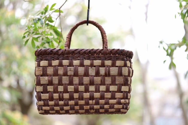 山葡萄の籠は、職人の手によって丁寧に編まれ、その独特の風合いと美しさは、長い歴史と伝統の証です。アトリエ草庵の職人たちは、その技術と情熱をもって、伝統を守りながらも新しいアイデアやデザインを取り入れ、現代のニーズに応える作品を生み出しています。