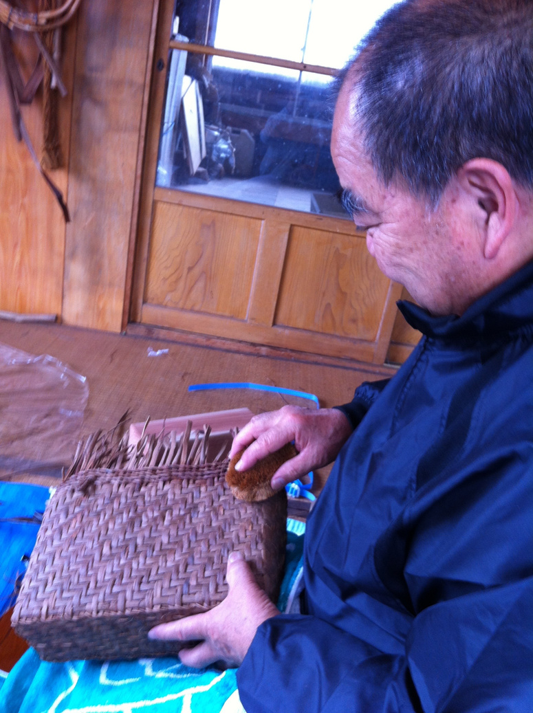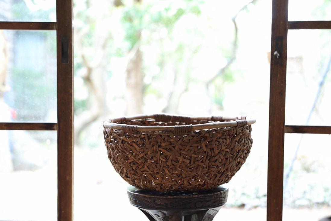 アトリエ草庵は、日本の伝統工芸品である山葡萄(やまぶどう)の籠を中心に、国産の材料を用いて繊細かつ美しい作品を手がける工房です。